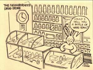In 1979, Memphis artist Tom Foster drew a series of cartoon postcards for the Pink Palace. Foster is an accomplished local artist who had drawn courtroom trials, album covers, comic books and theater sets. He trained at Washington University in St. Louis, the University of Memphis and Memphis College of Art. After school, Foster worked professionally as a courtroom artist, art director for WMC TV-5 and a graphics coordinator for the University of Memphis. In the 1990s, he decided to become a free-lancer and eventually self-published several books of his work. Arguably his best known work is his collaboration on the original “Midtown is Memphis” bumper sticker.